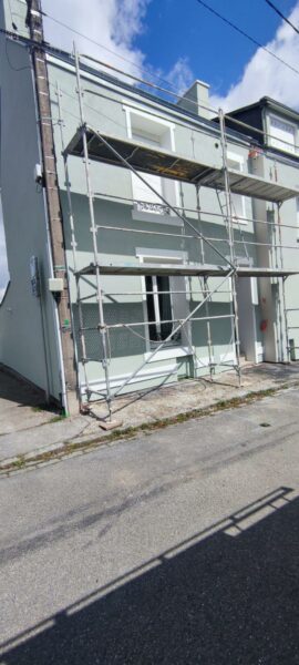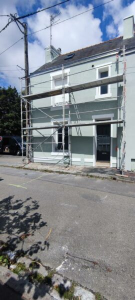 À Lorient, notre équipe EcoTechnologies a finalisé une maison en Isolation Thermique par l’Extérieur avec une finition vert pâle élégante.